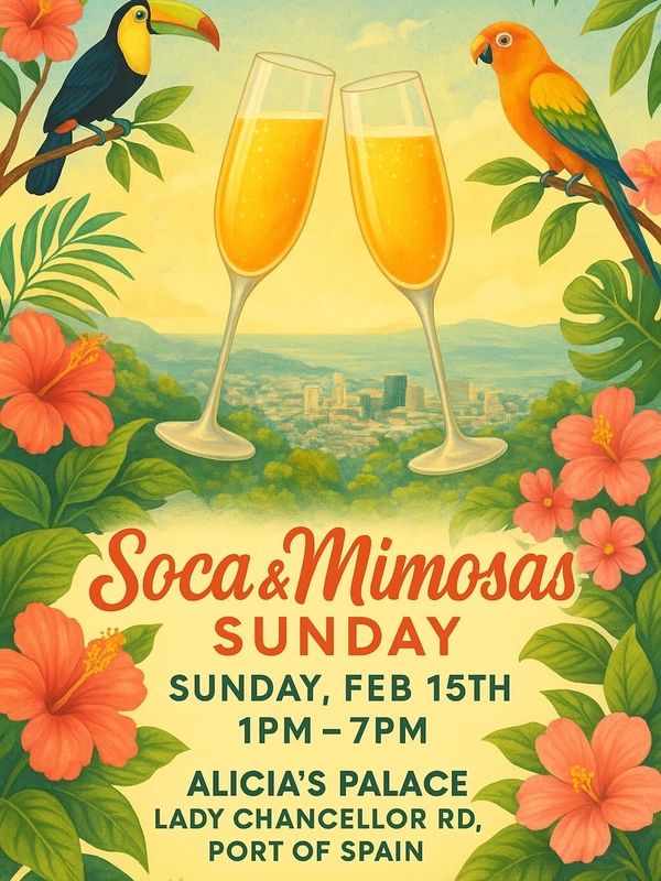 Soak up the sunshine, sip on mimosas , and enjoy sweet sounds of Soca at our Soca & Mimosa Sunday Event. Join us for an elevated Sunday affair of island vibes, good music, and great energy in the heart of Port of Spain.